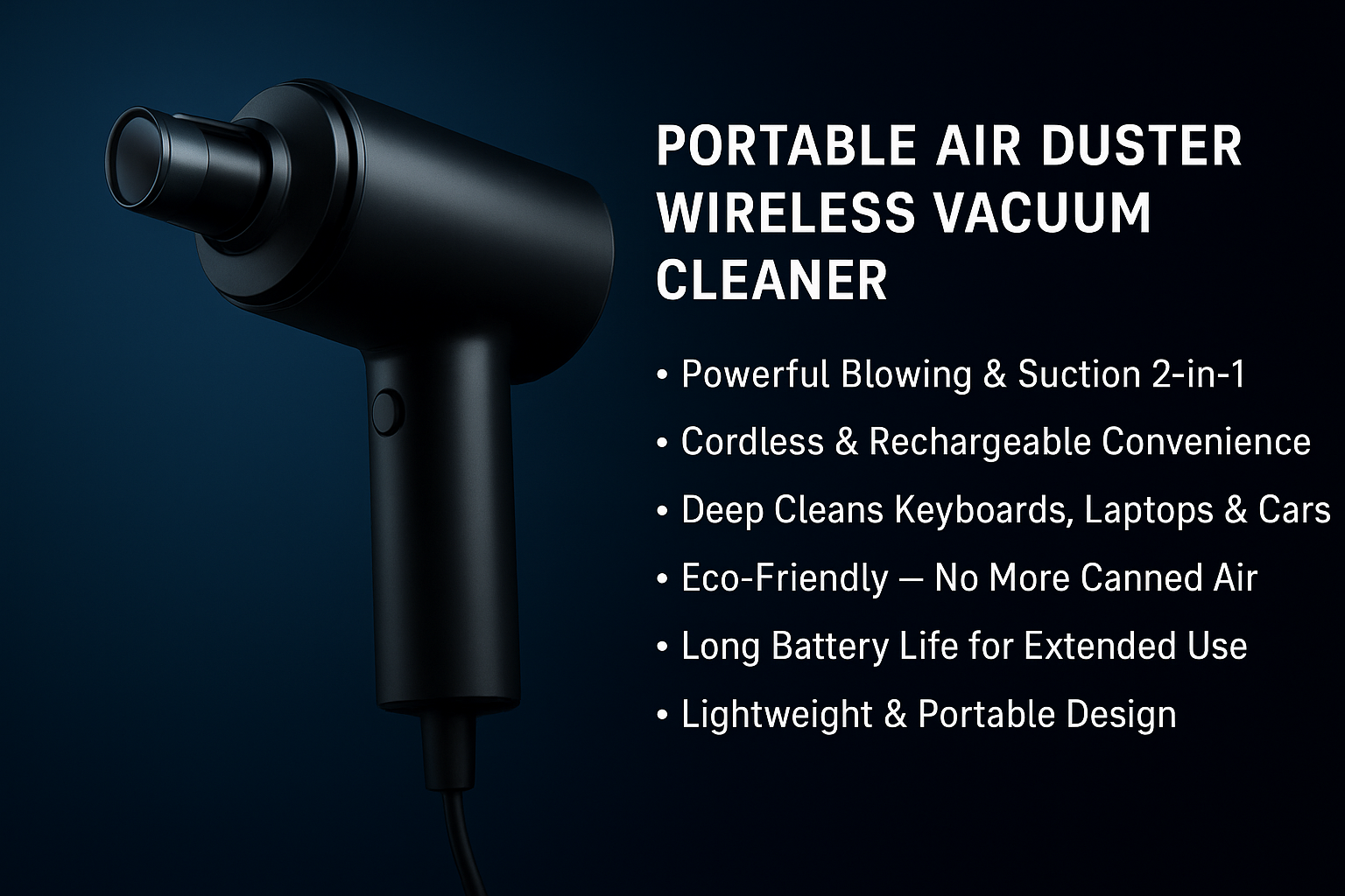 This versatile 3-in-1 device offers powerful vacuum suction and high-speed air blowing, making it ideal for cleaning carpets, upholstery, and hard-to-reach areas. Its lightweight design and cordless operation allow for ultimate convenience during cleaning sessions.
